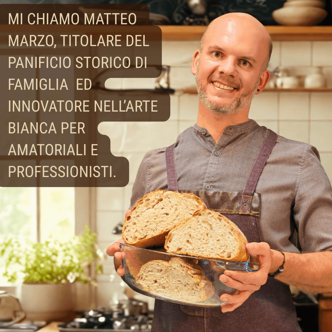 Sono Matteo Marzo, panificatore di terza generazione e formatore nel settore dell'Arte Bianca.